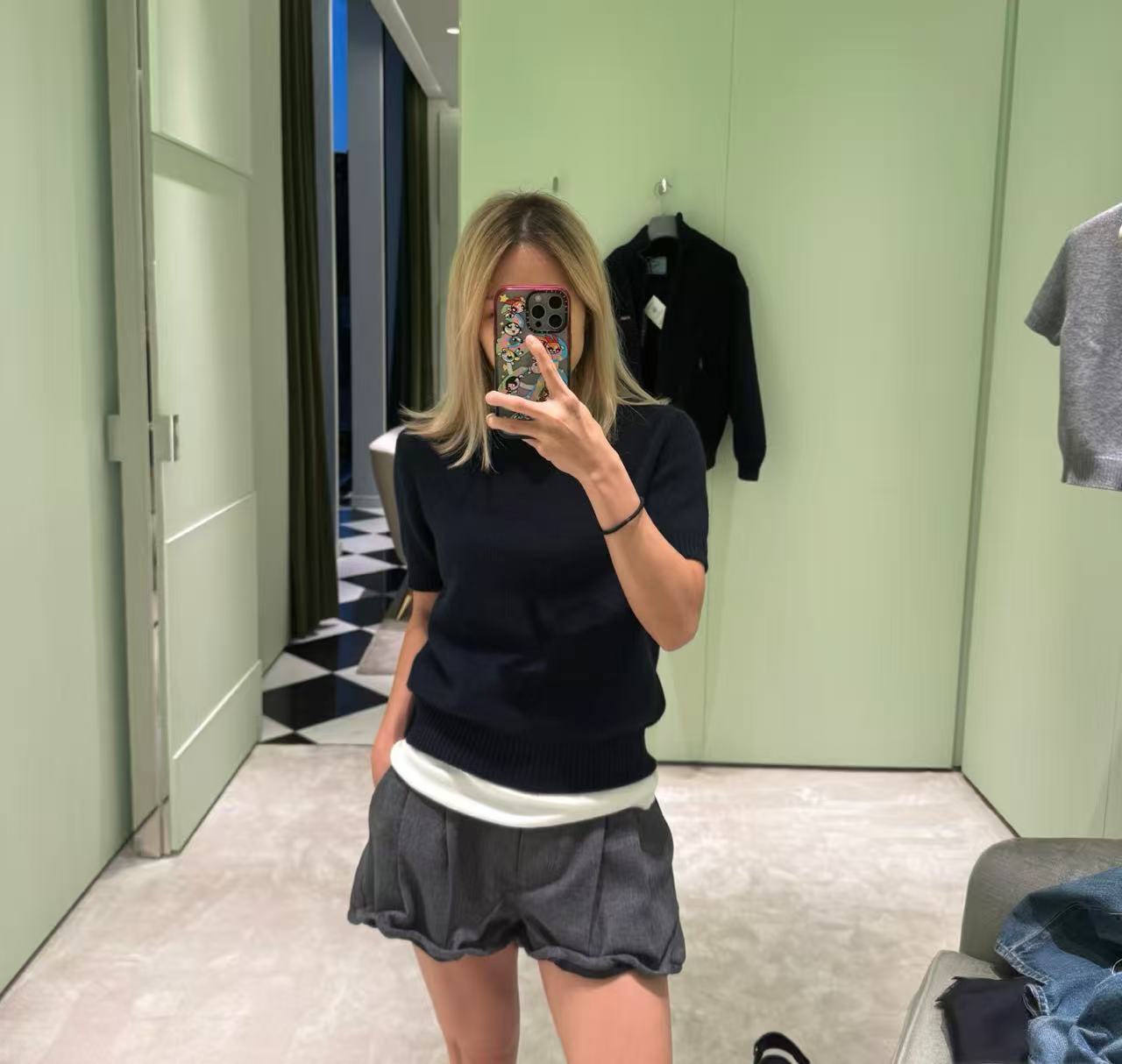 2025早春 PD家 灰色下擺褶皺短褲