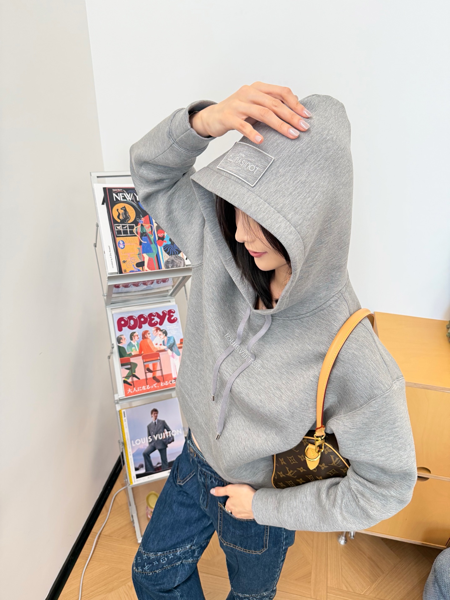 寬大的連帽上加入 LOGO 標籤,為整體風格再加一點品牌識別,簡約但不無聊。
