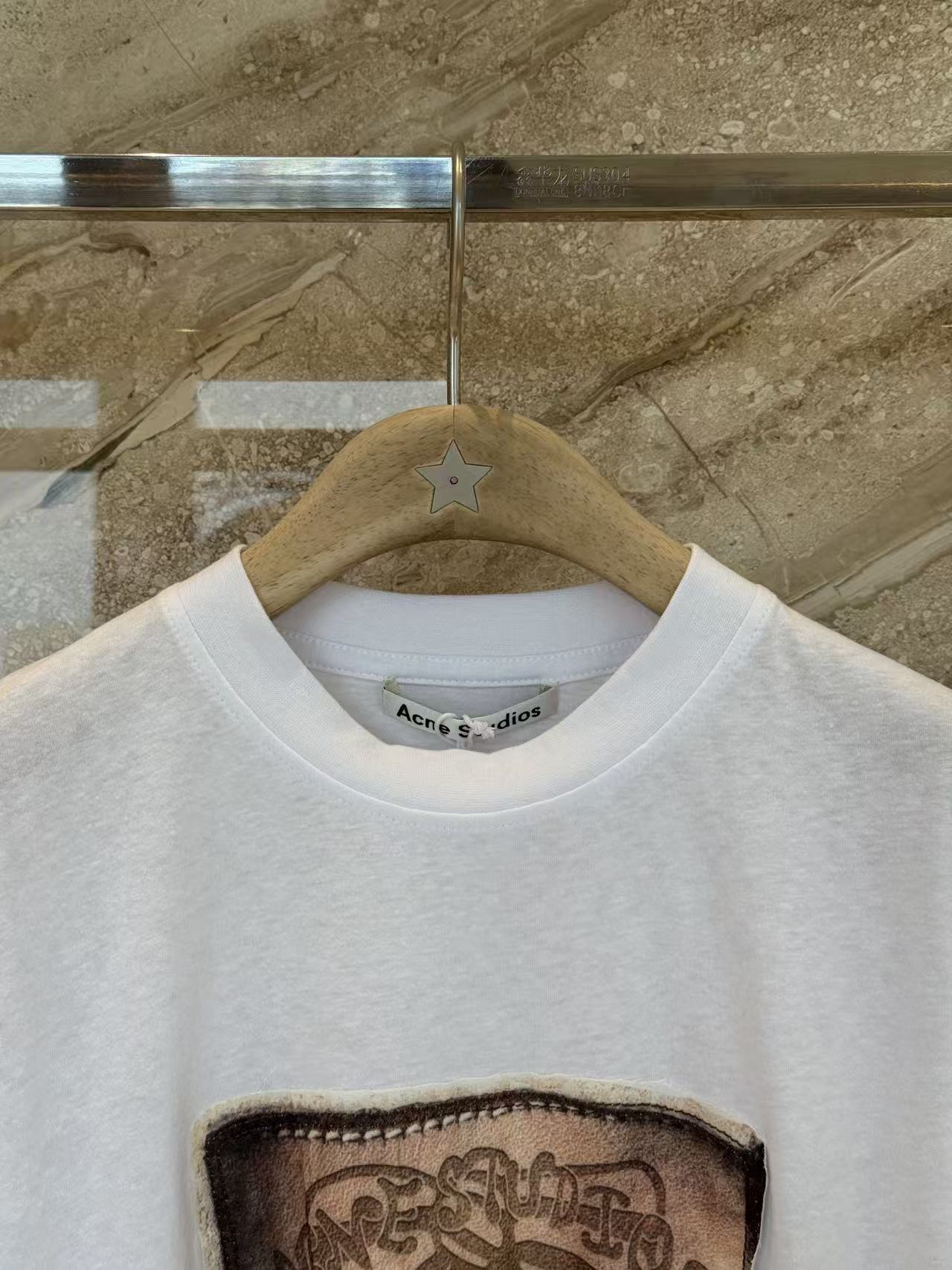 藝術感復古貼布設計: 胸前印花採用特殊的貼布縫製工法,結合精細的做舊色彩,呈現出如古著般的層次張力。