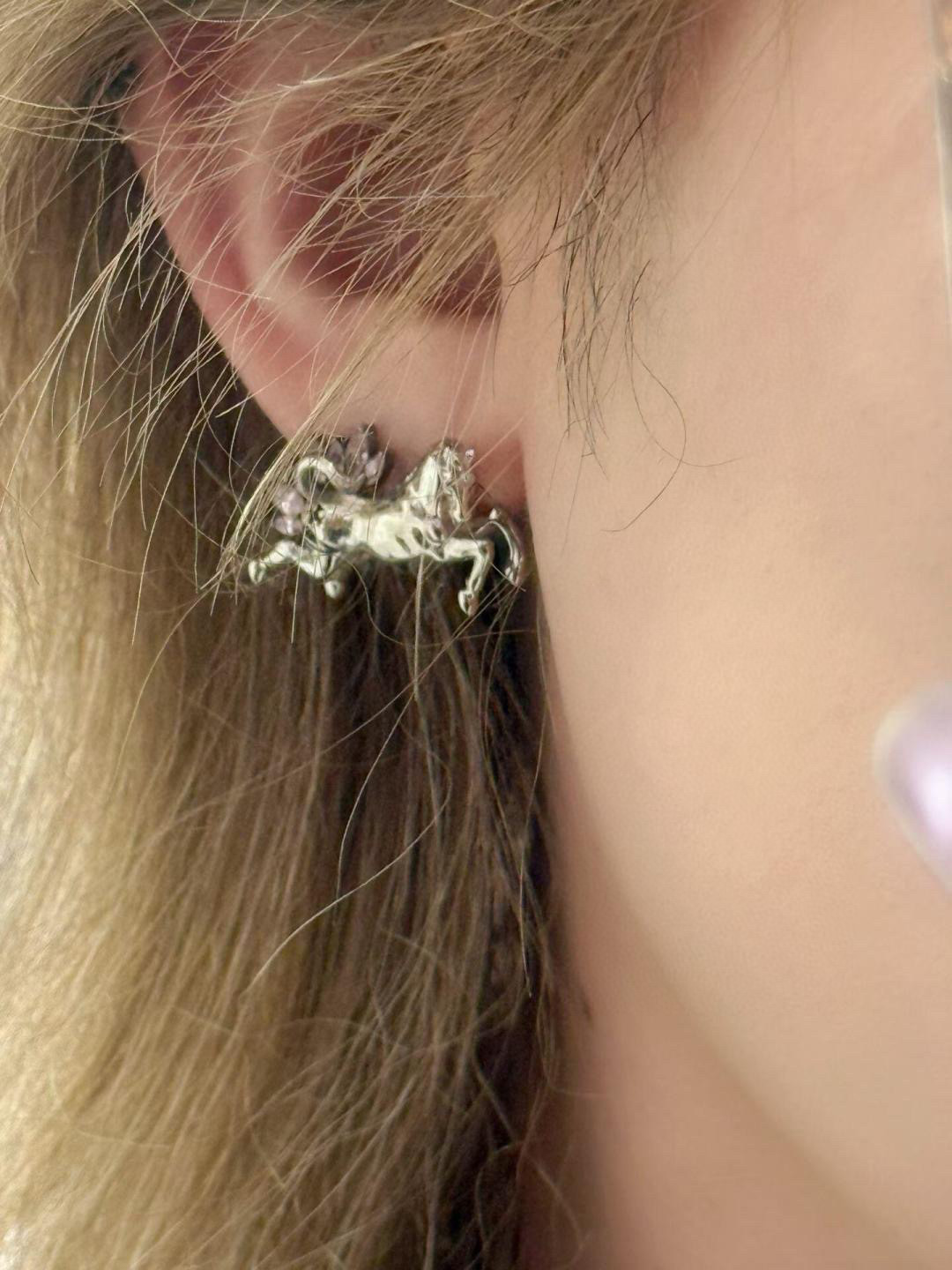 耳釘整體以立體小馬搭配經典王冠球設計,細節層次相當豐富,搭配流線感十足的土星環輪廓,在光線照射下能呈現細緻閃耀的光澤感,視覺效果非常精緻。