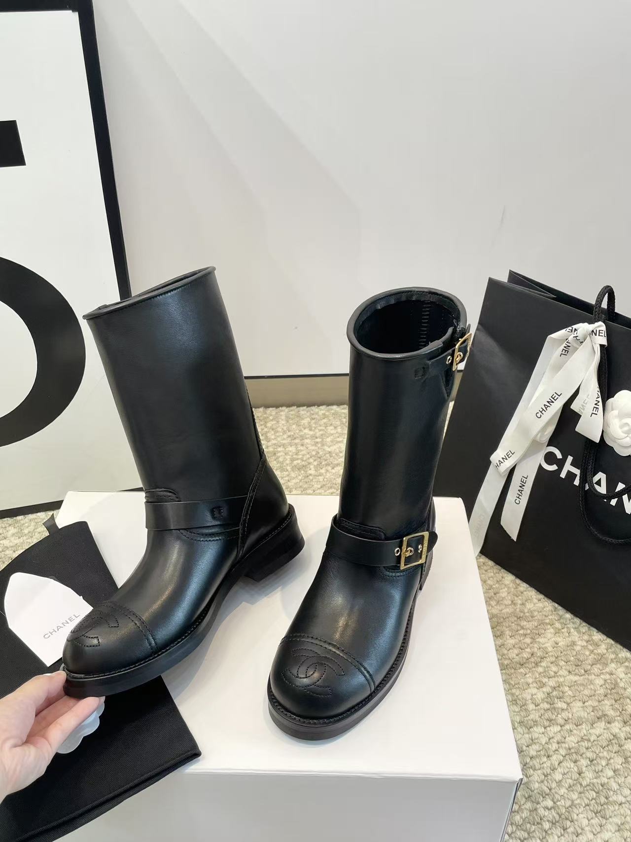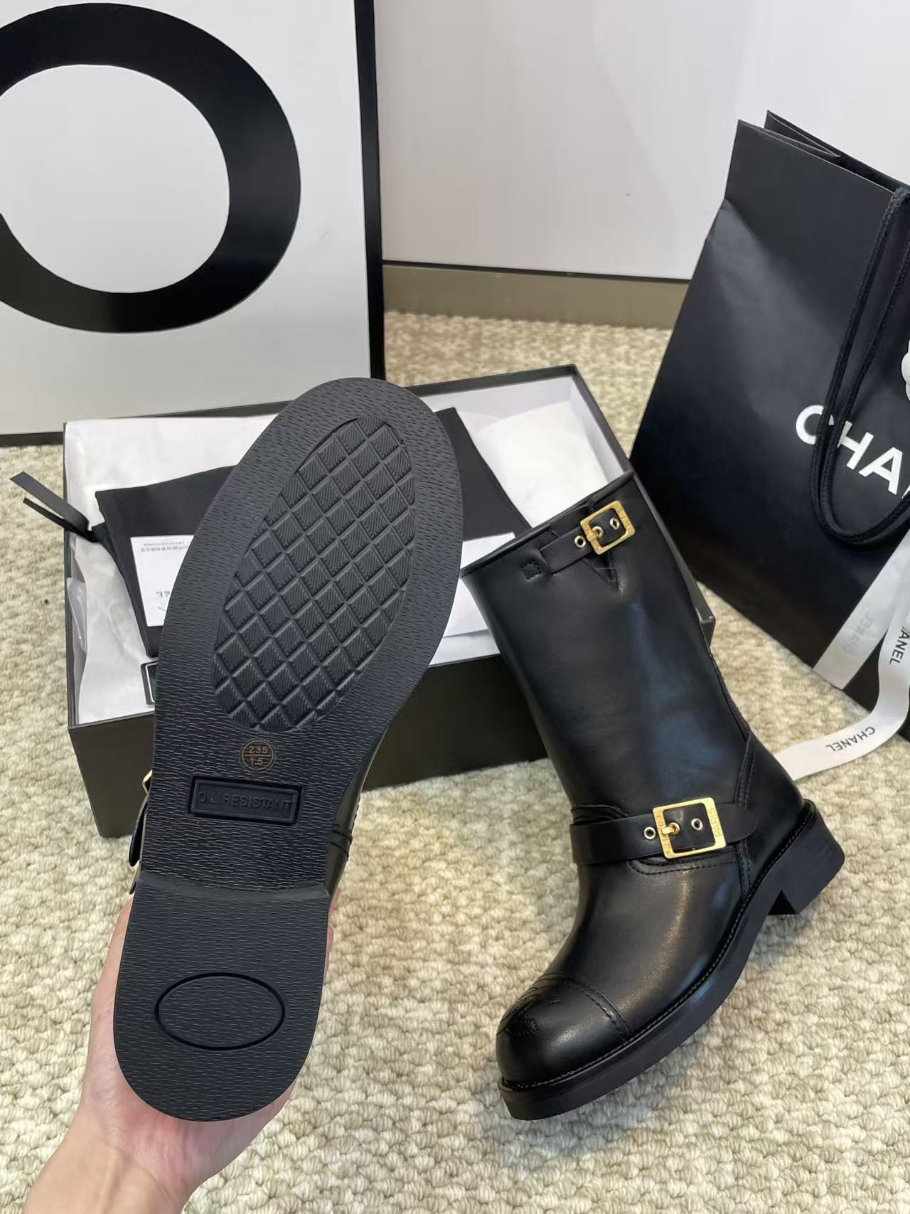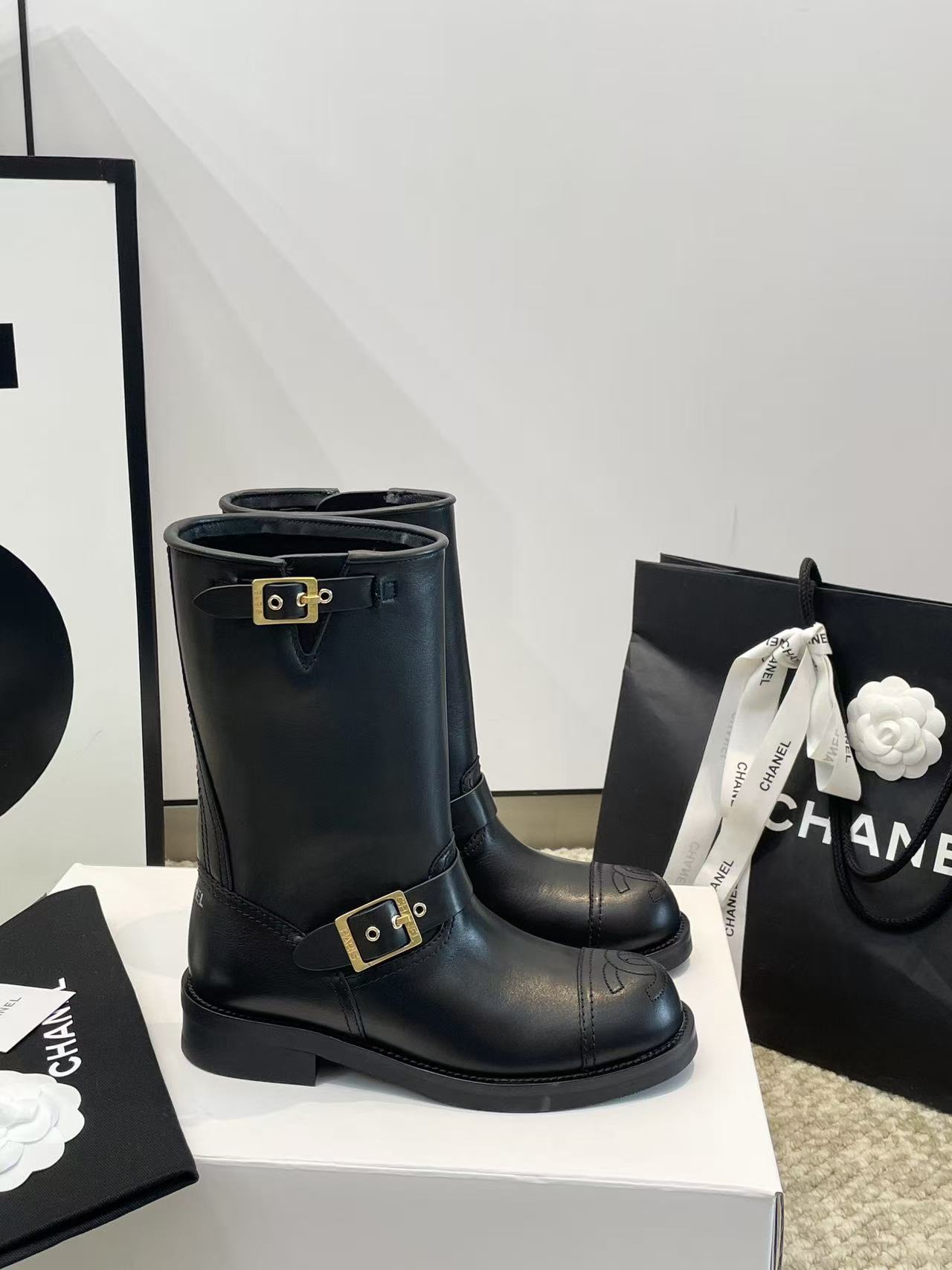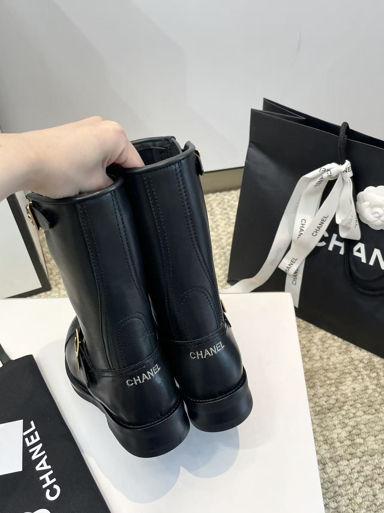 雙 C Logo:靴子上的 雙 C Logo 標誌,低調卻充滿了高級的辨識度。