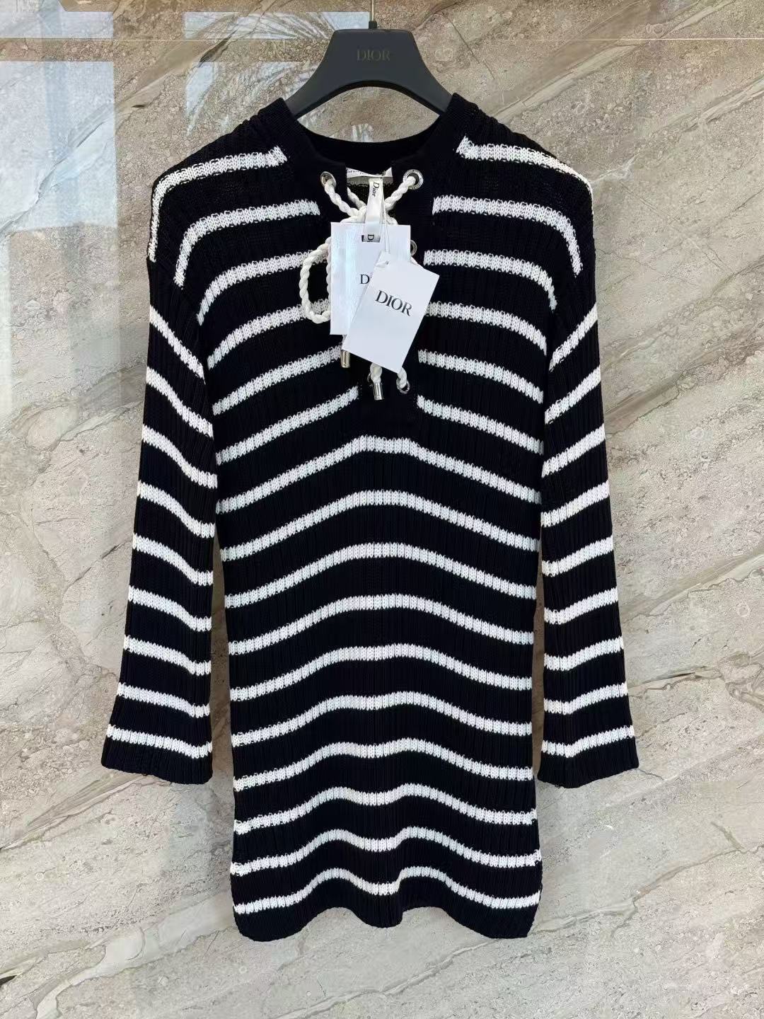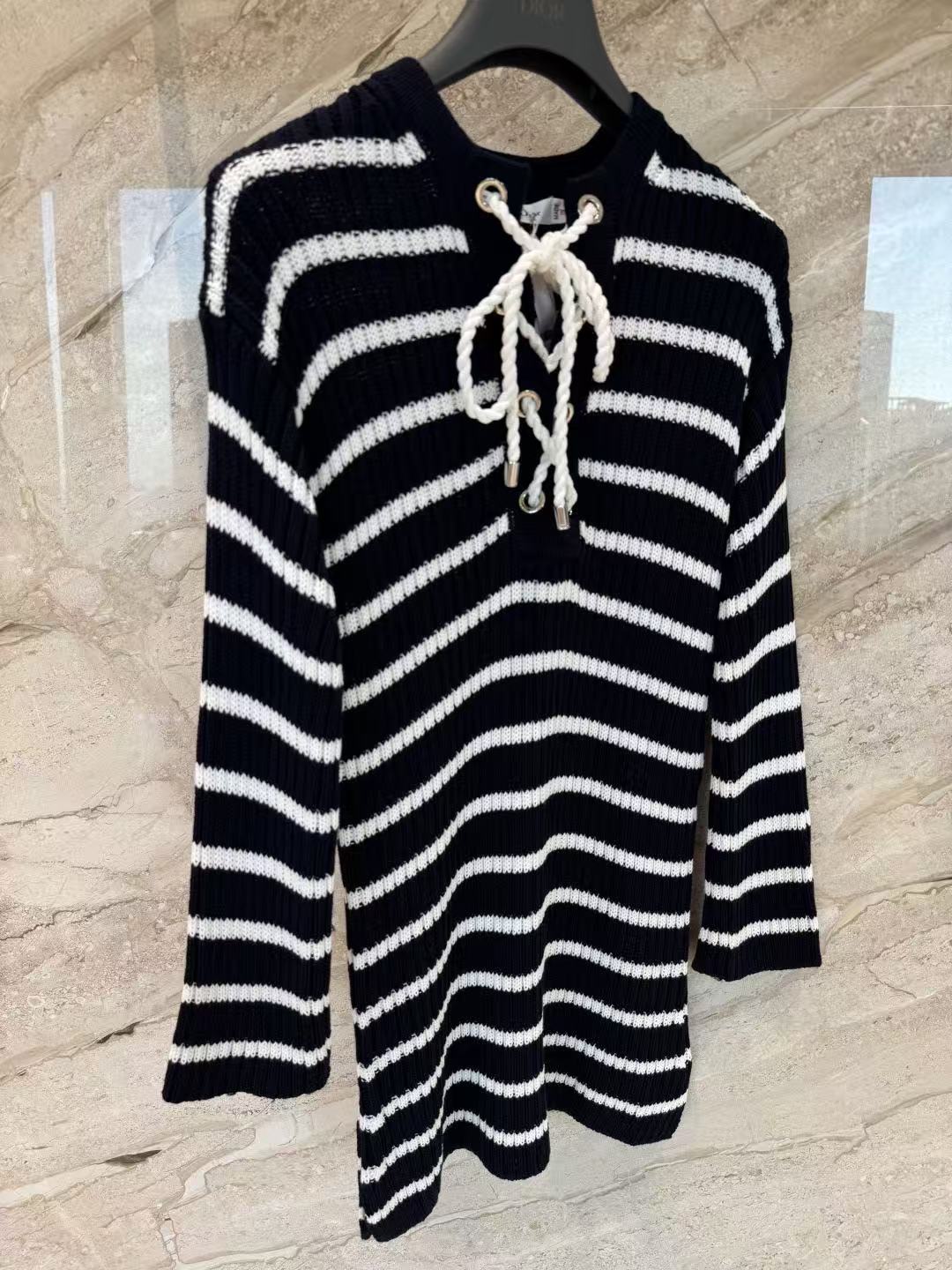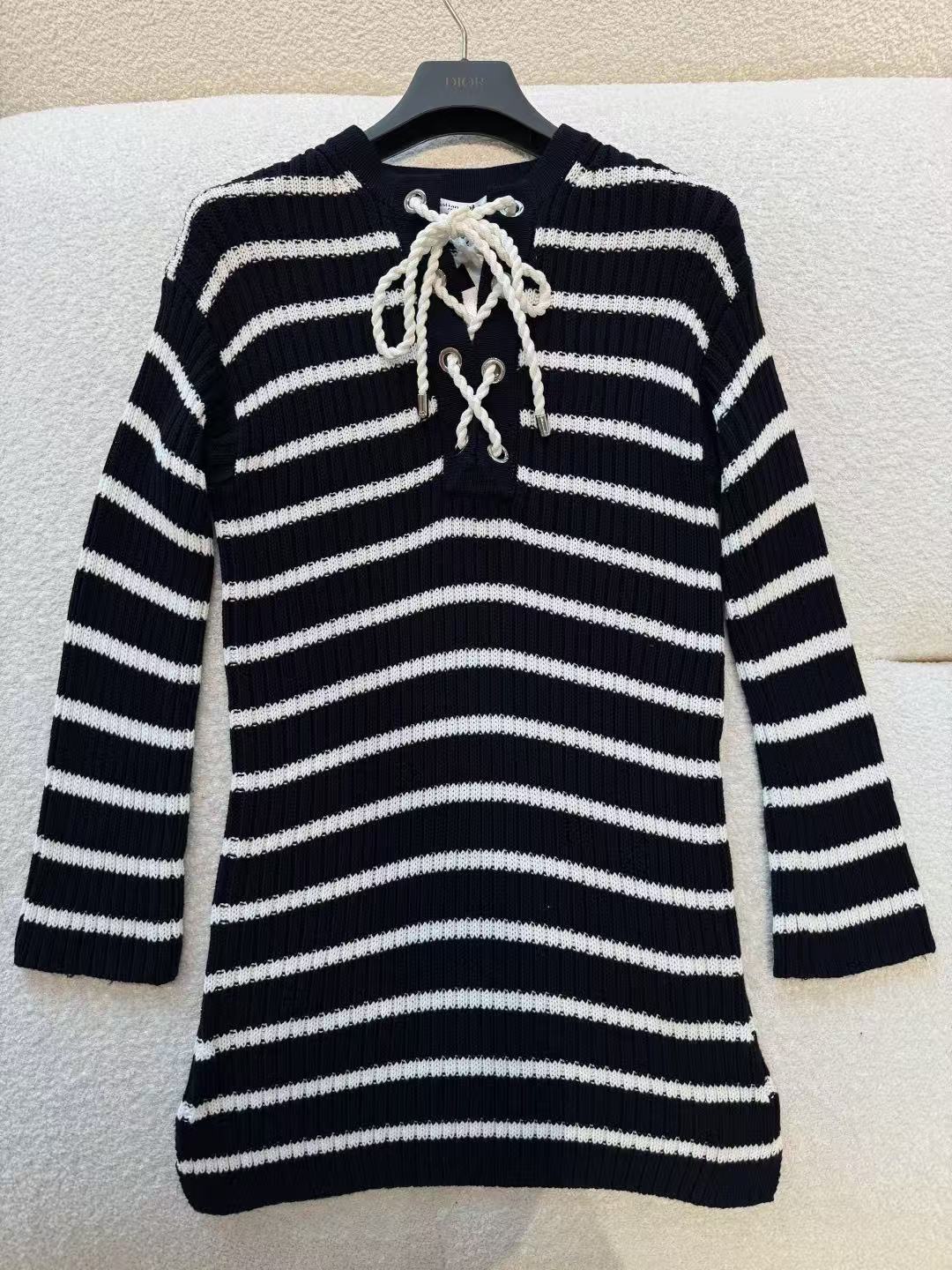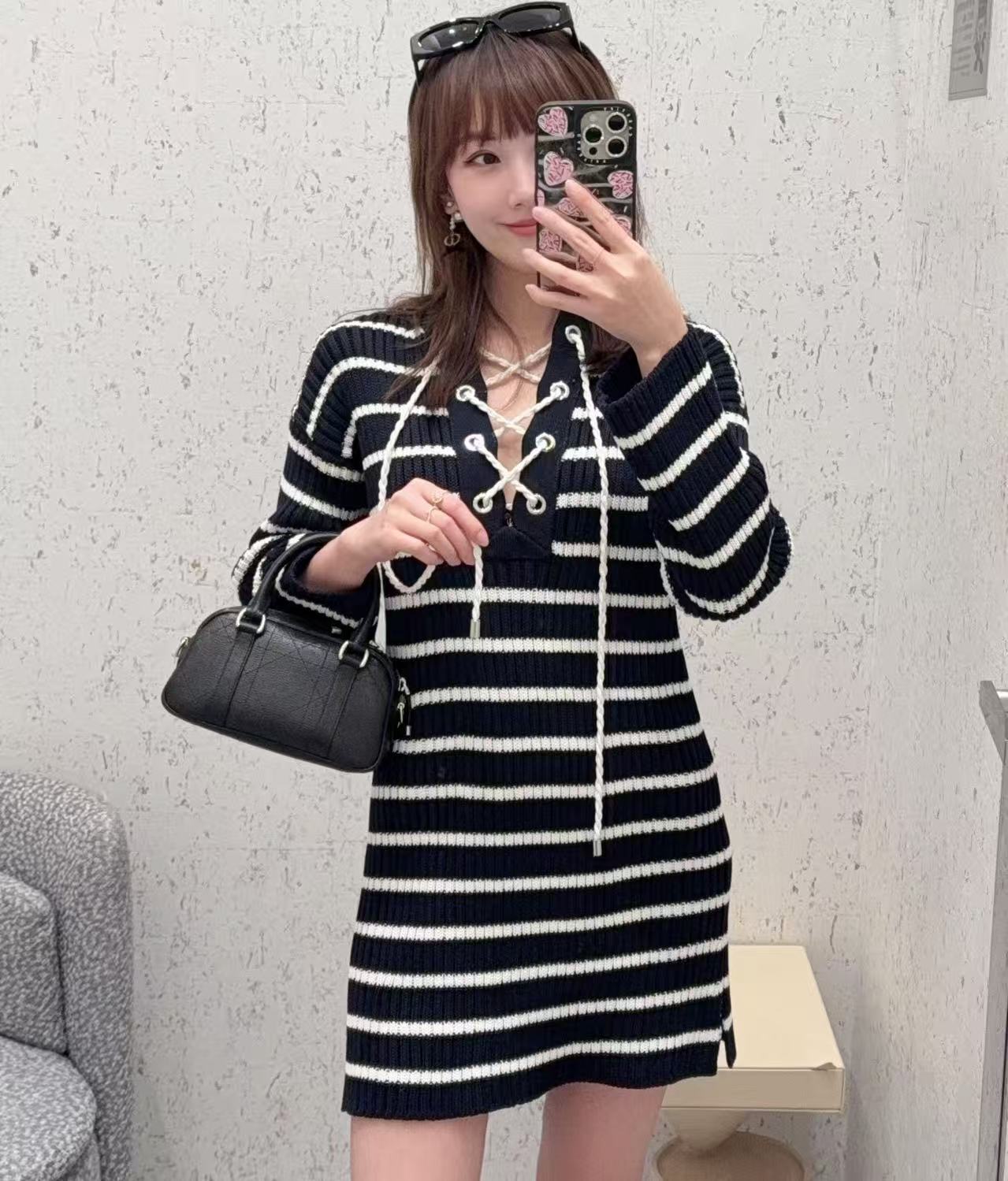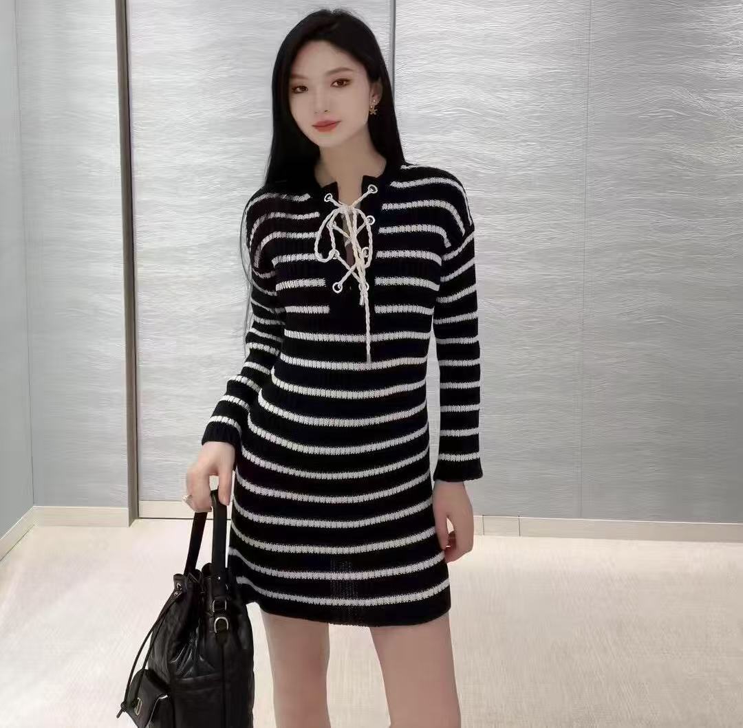條紋針織連身裙:抽繩美學下的鬆弛感!演繹極簡卻不凡的法式風情