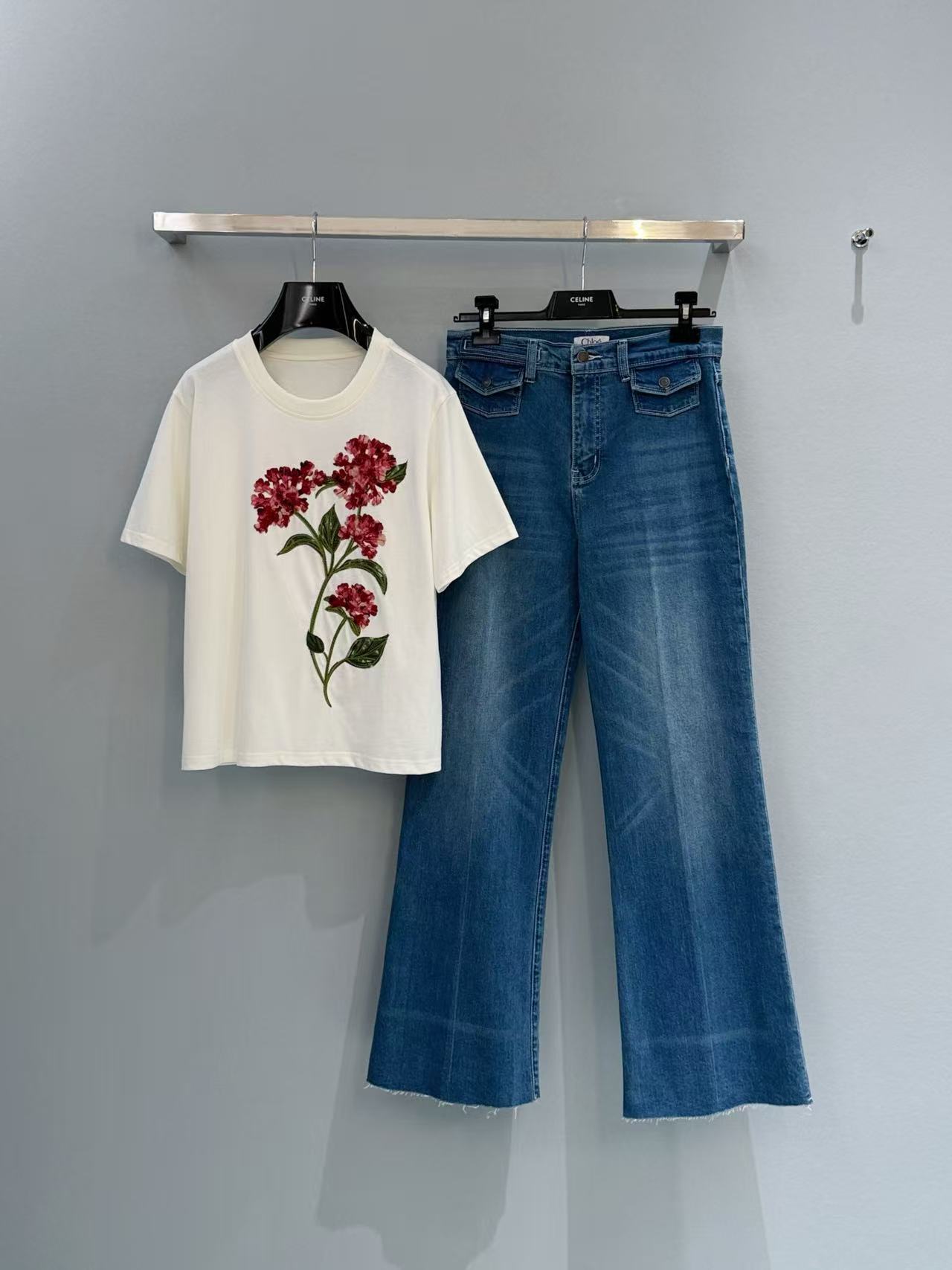 Sama Quebrada 的花卉設計細膩且色彩飽和度極高,展現出一種充滿生命力的野性美。搭配妳之前看中的 Chloé 高腰闊腿毛邊牛仔褲,那種隨性中帶點華麗的「度假感 OOTD」簡直無敵。