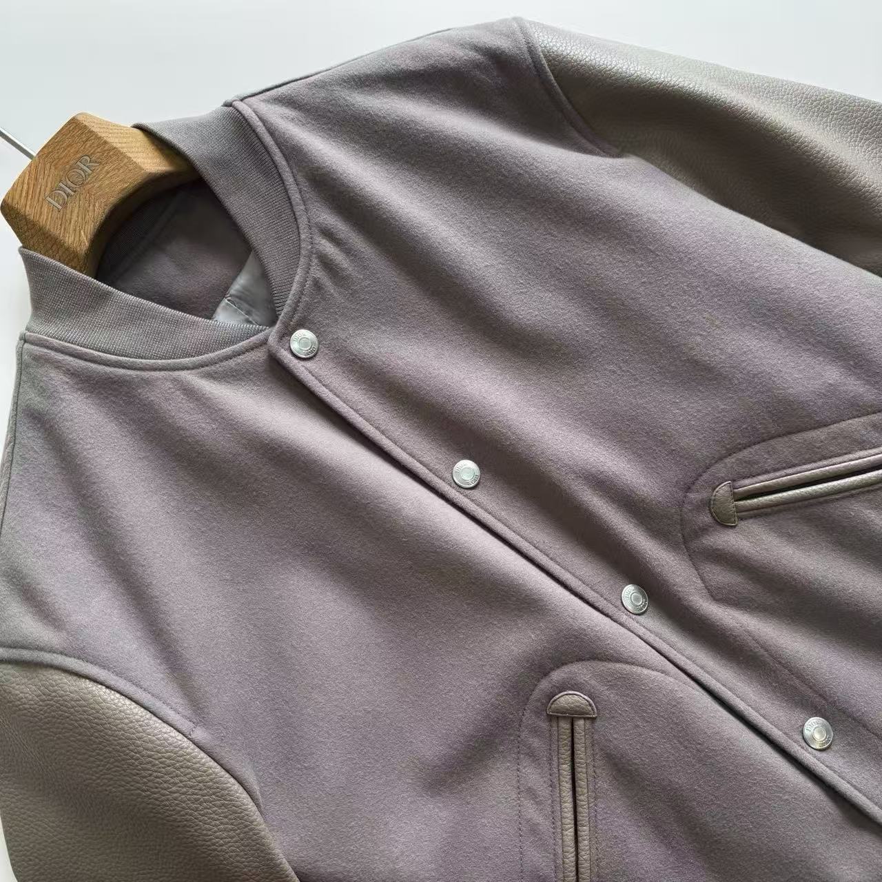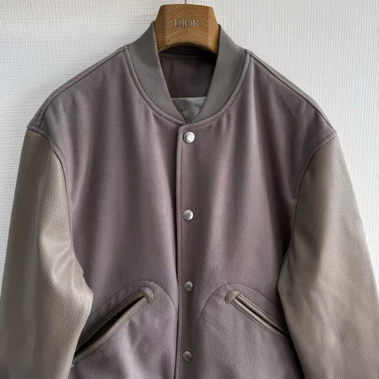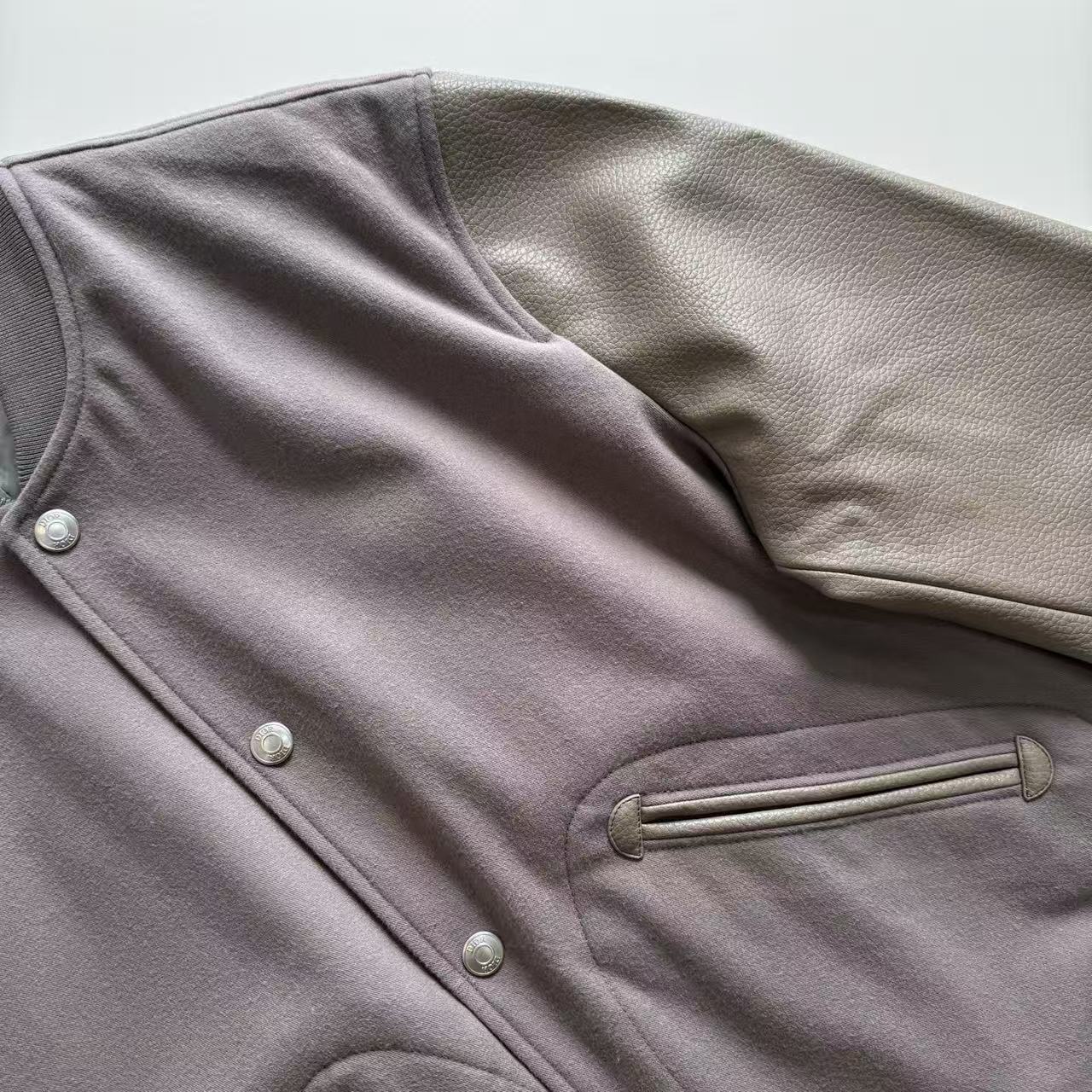 2025秋冬新品 D家 牛皮革拼接復古棒球外套