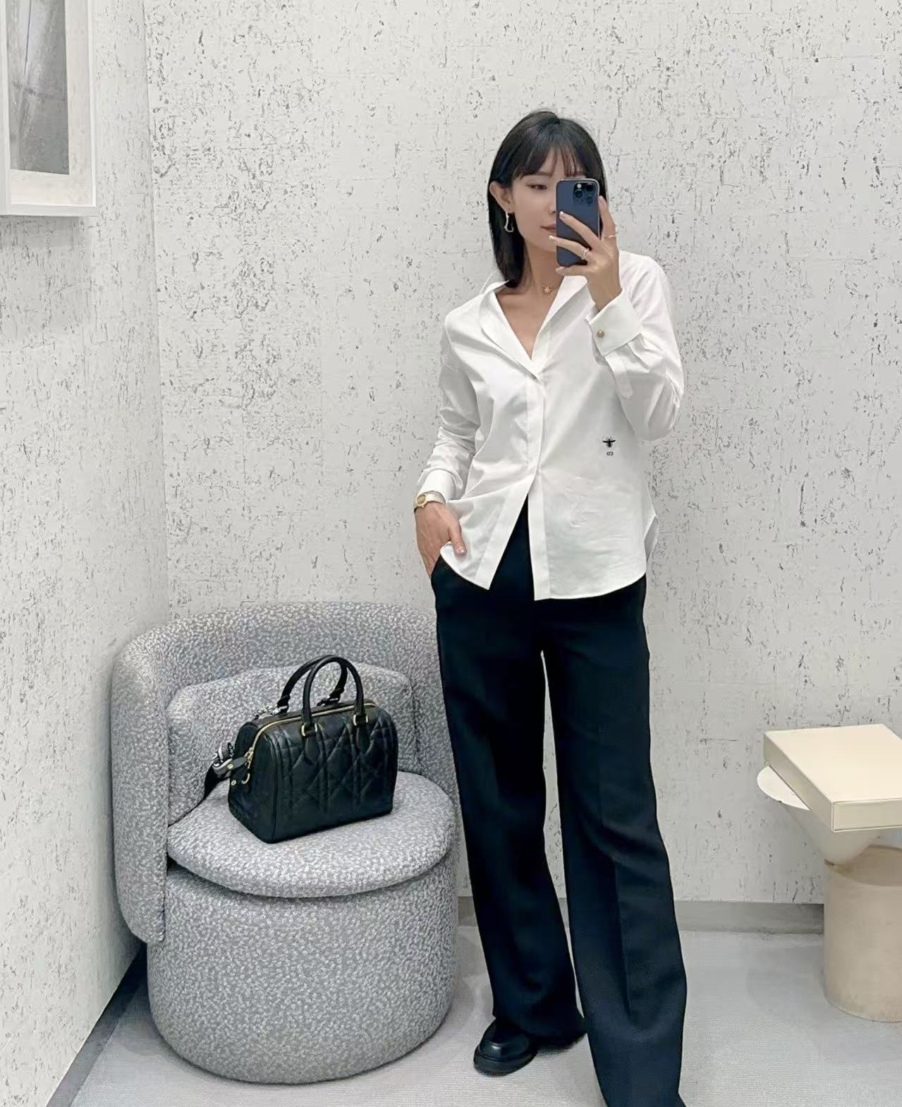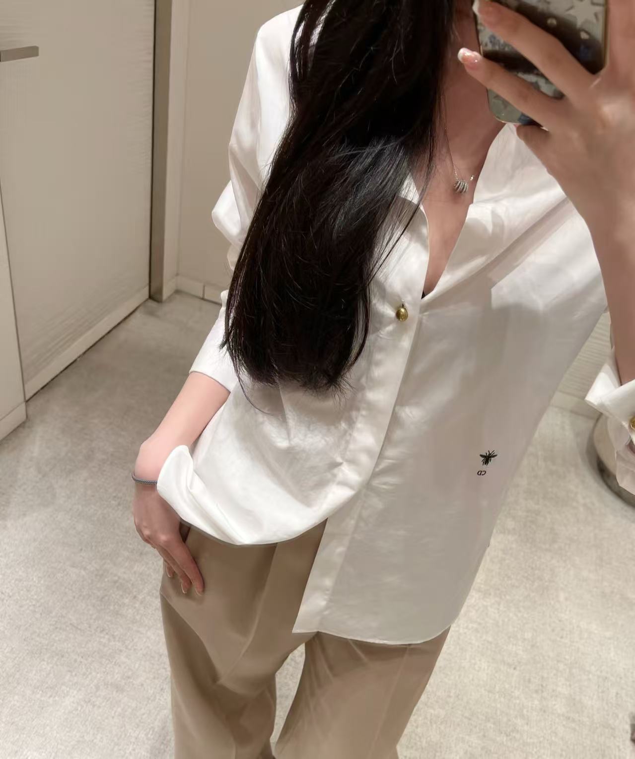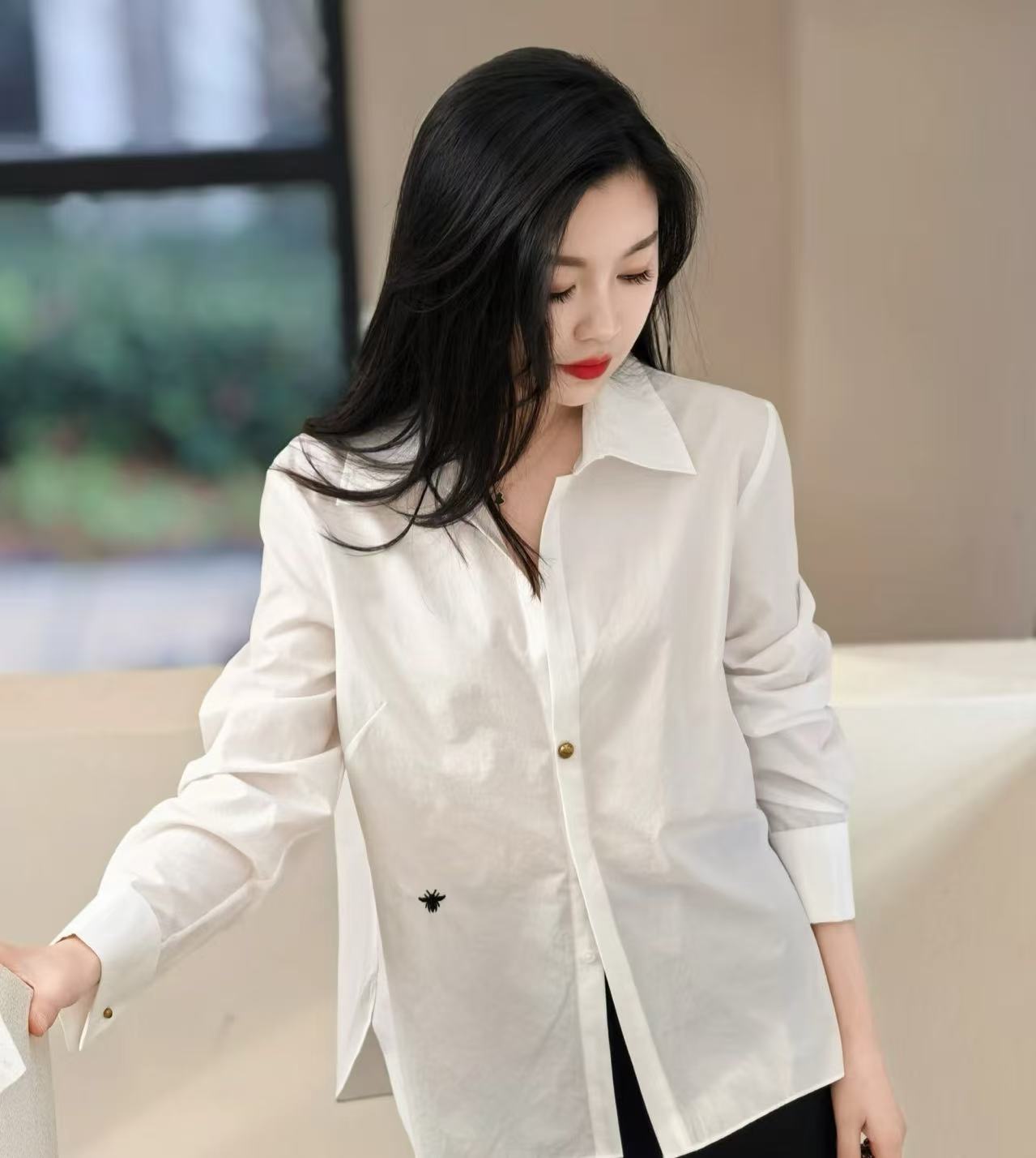 2025秋冬 D家 低胸領金豆白襯衫
