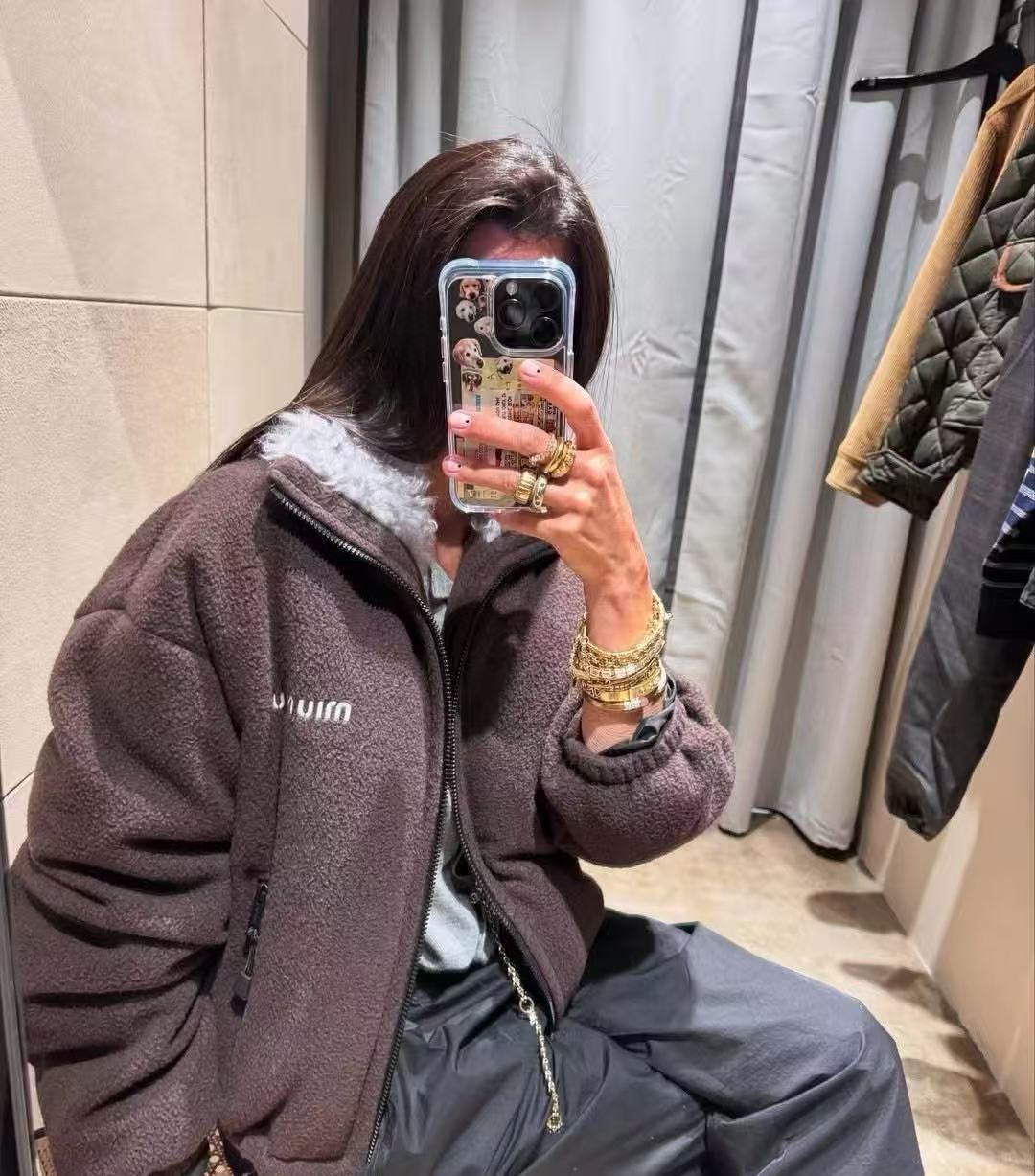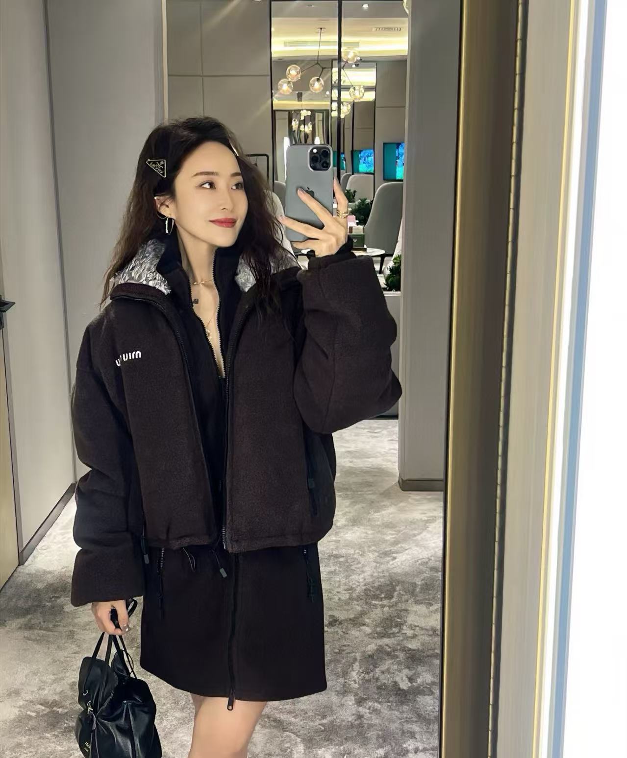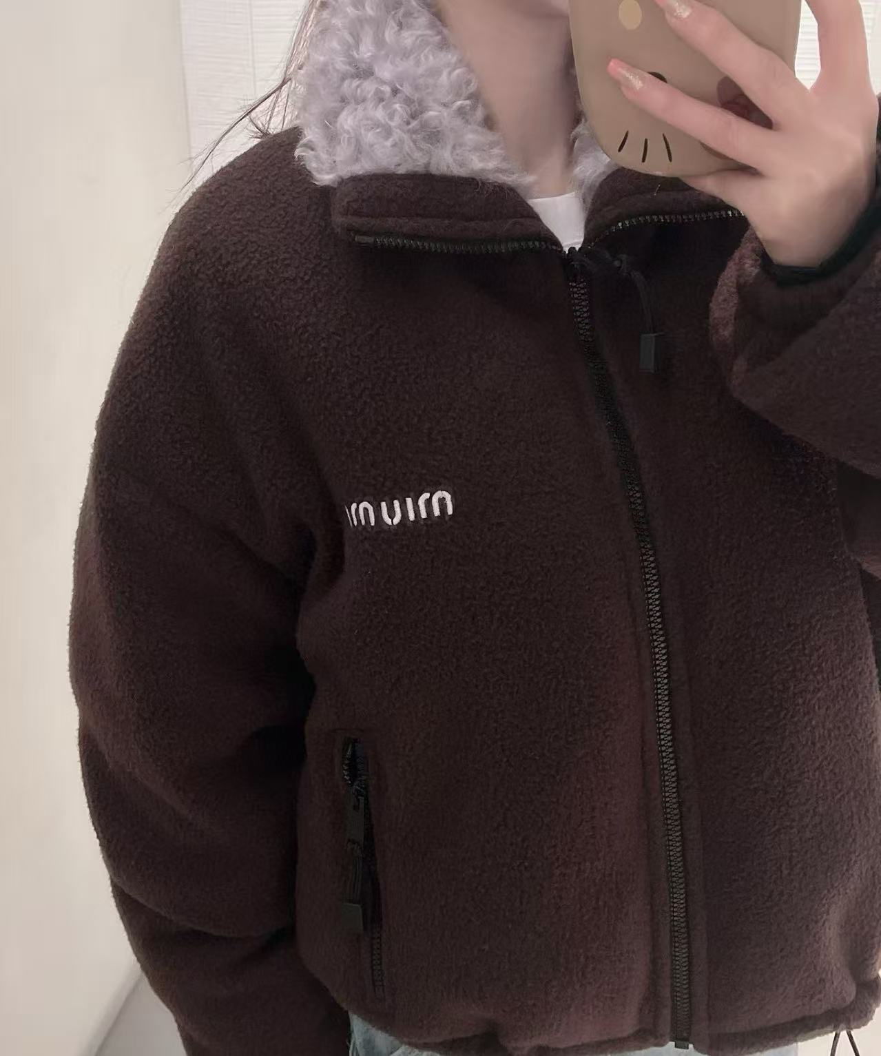 Miu家 羊羔毛領顆粒絨羽絨外套
