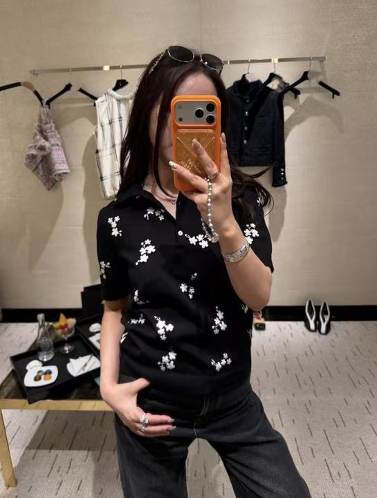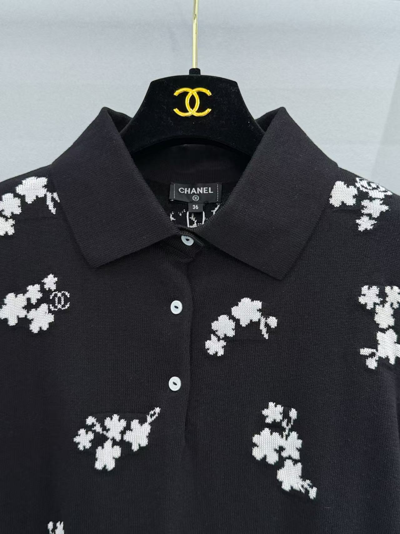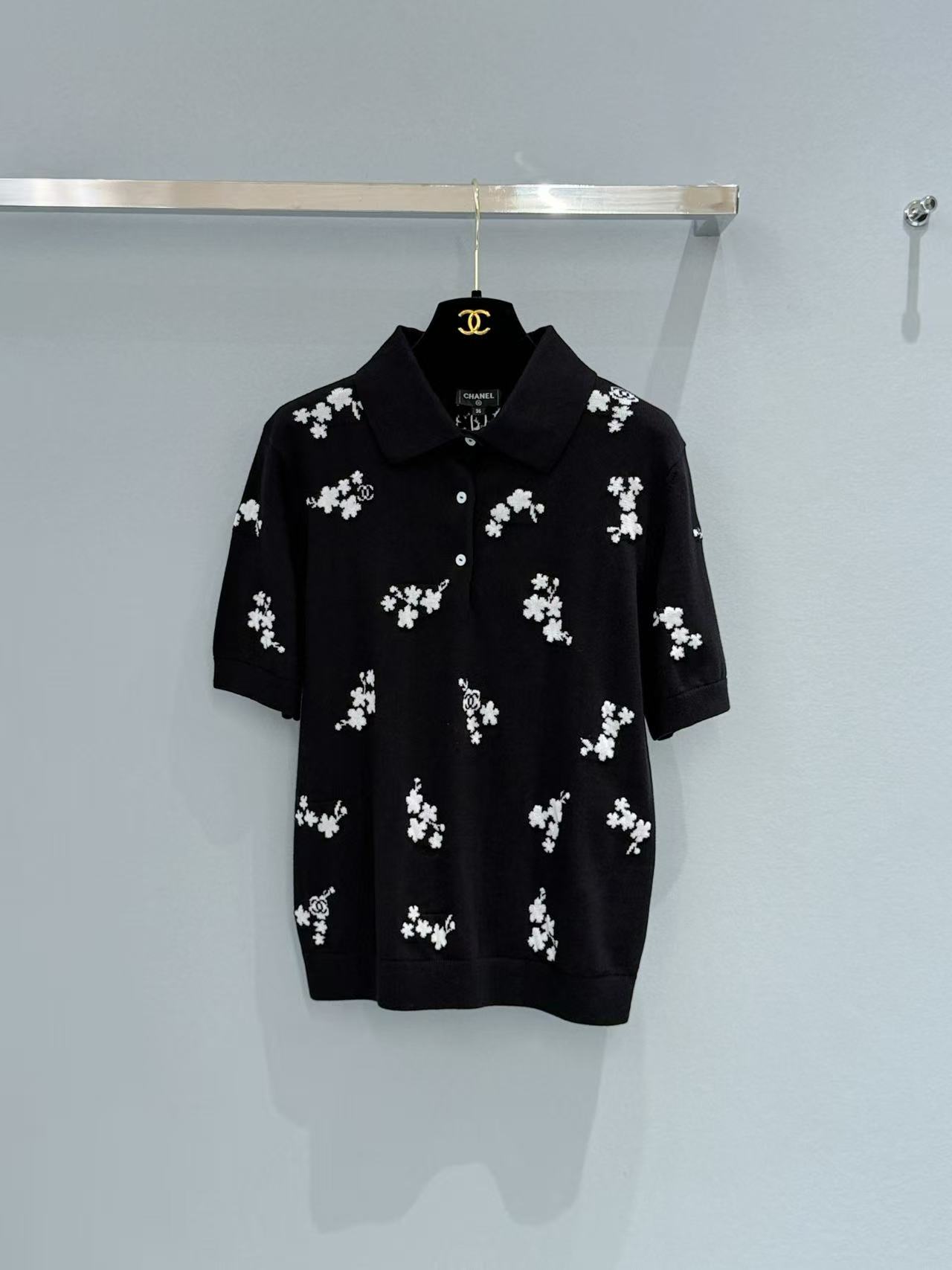 2026早春 C家 立體白花 Polo 針織衫