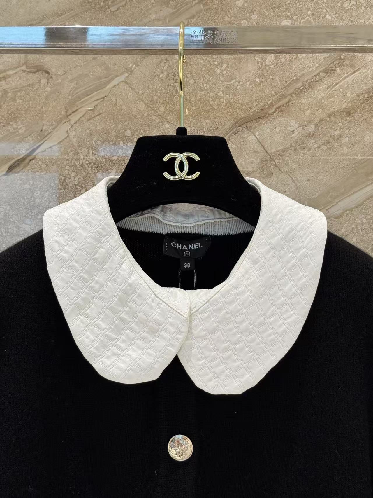 細節處理也毫不含糊,精緻的金色 Logo 鈕扣搭配背部刺绣 Logo,在低調中展現出標誌性的高級質感。