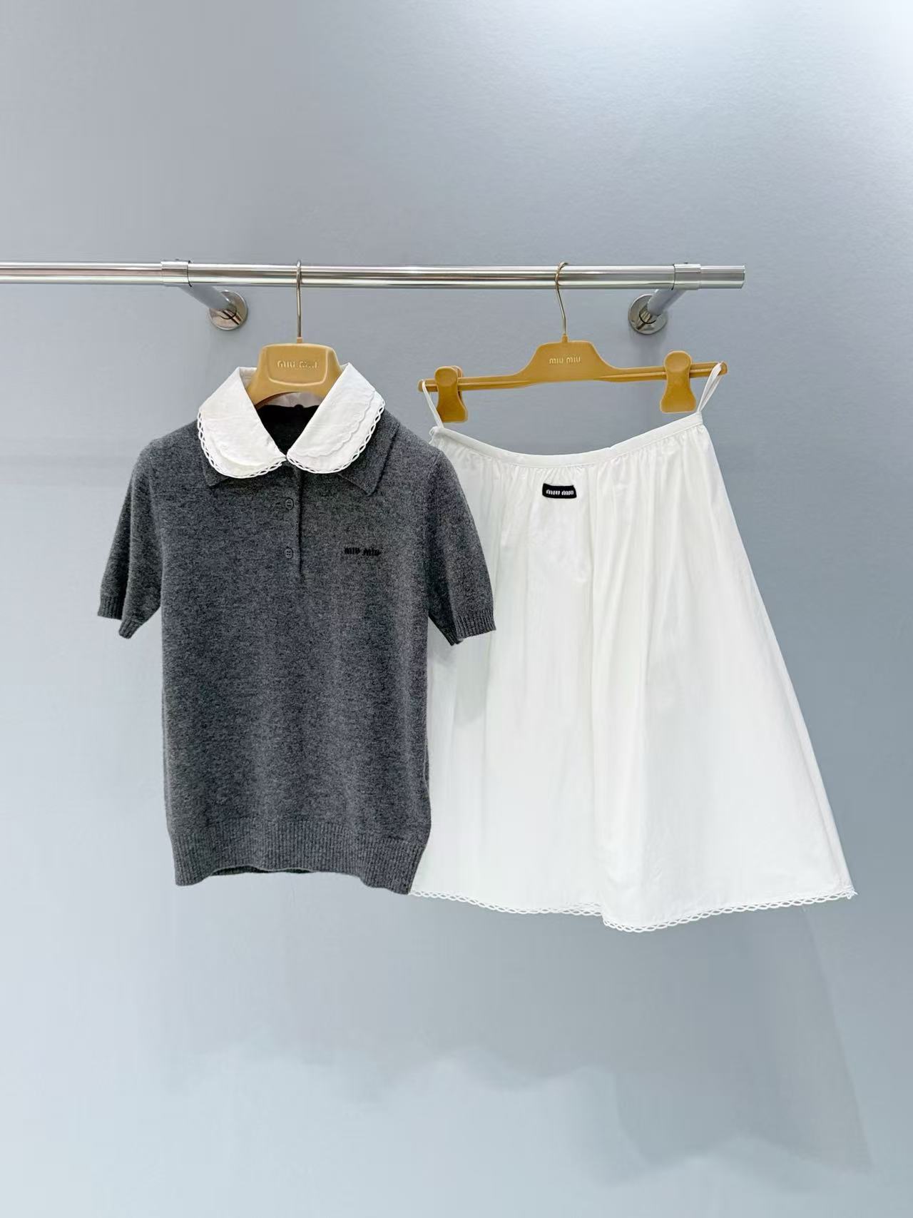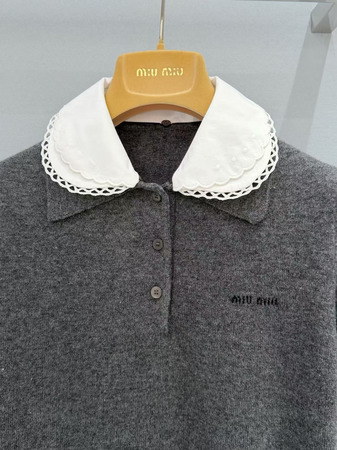 2026 早春 Miu家 可拆卸花邊領針織短袖